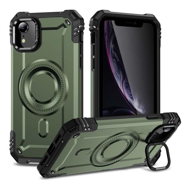 For iPhone XR Lens Holder MagSafe Phone Case(Army Green)