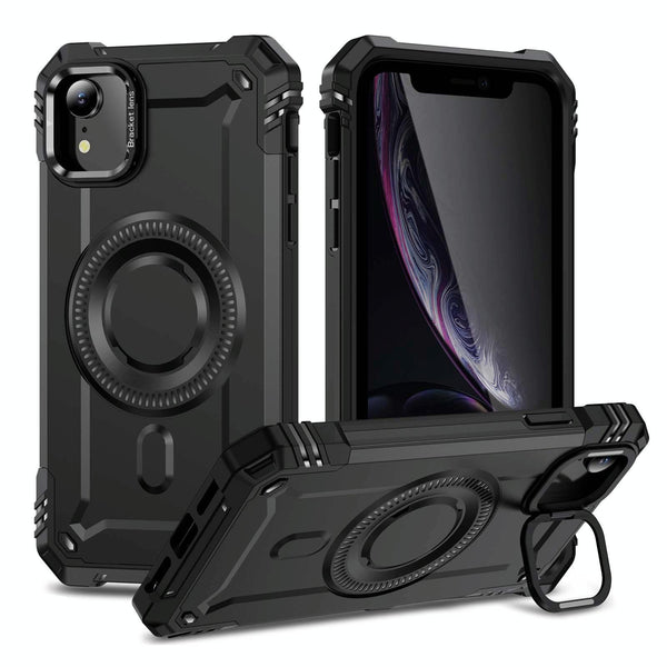 For iPhone XR Lens Holder MagSafe Phone Case(Black)
