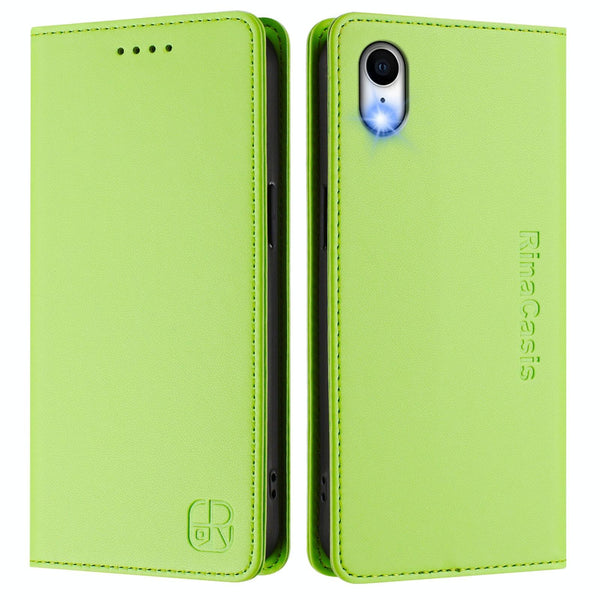 For iPhone XR RC01 Dual-Folded Magnetic Suction RFID Leather Phone Case(Grass Green)