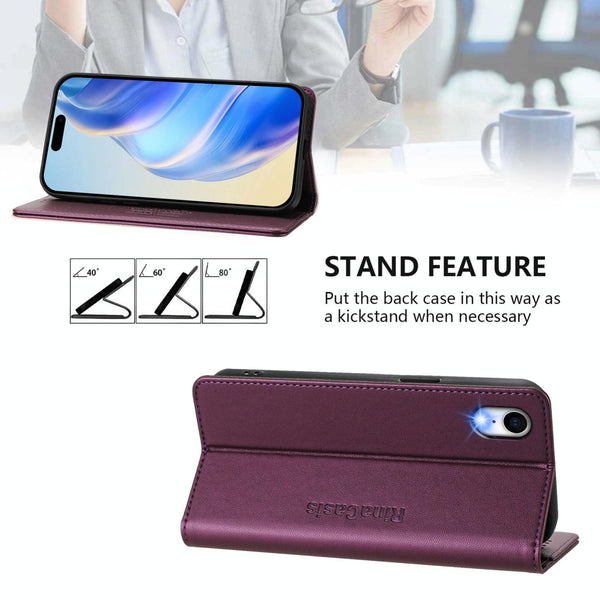 For iPhone XR RC01 Dual-Folded Magnetic Suction RFID Leather Phone Case(Violet)