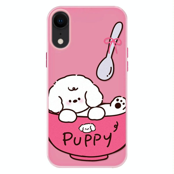 For iPhone XR Skin Feeling Jelly TPU Hybrid PC Phone Case(A Bowl of Puppy Pink)