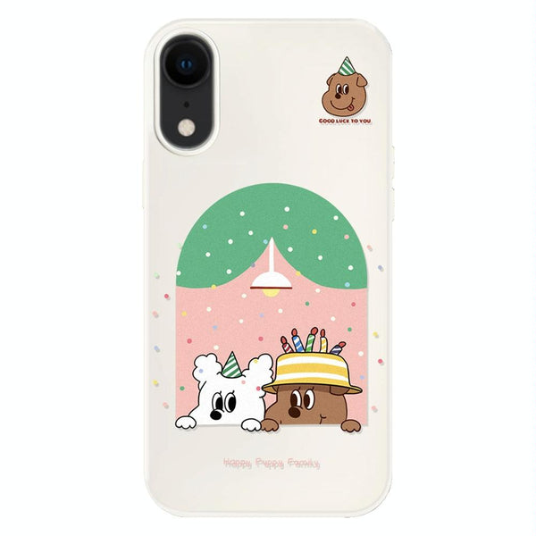 For iPhone XR Skin Feeling Jelly TPU Hybrid PC Phone Case(Birthday Puppy Beige)