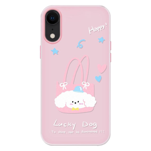 For iPhone XR Skin Feeling Jelly TPU Hybrid PC Phone Case(Dog Tote Bag Pink)
