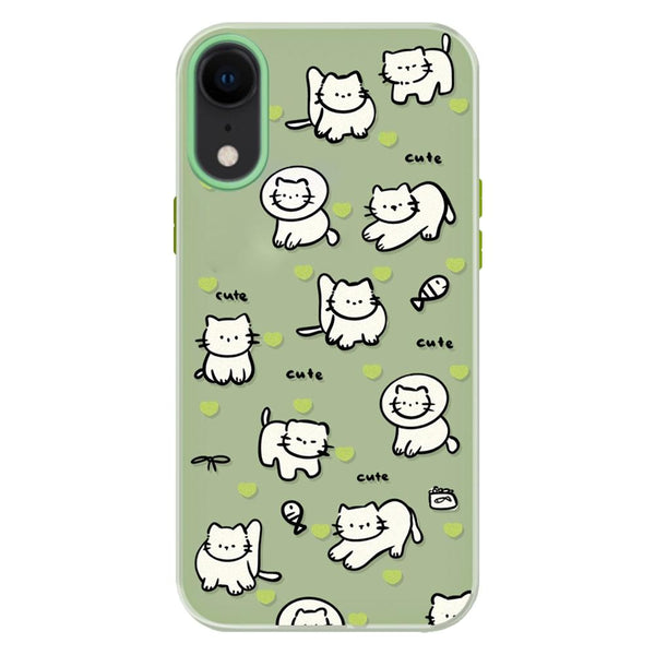 For iPhone XR Skin Feeling Jelly TPU Hybrid PC Phone Case(Green Heart Cat Green)