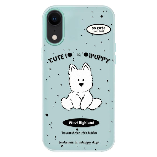 For iPhone XR Skin Feeling Jelly TPU Hybrid PC Phone Case(Line Dog Light Green)