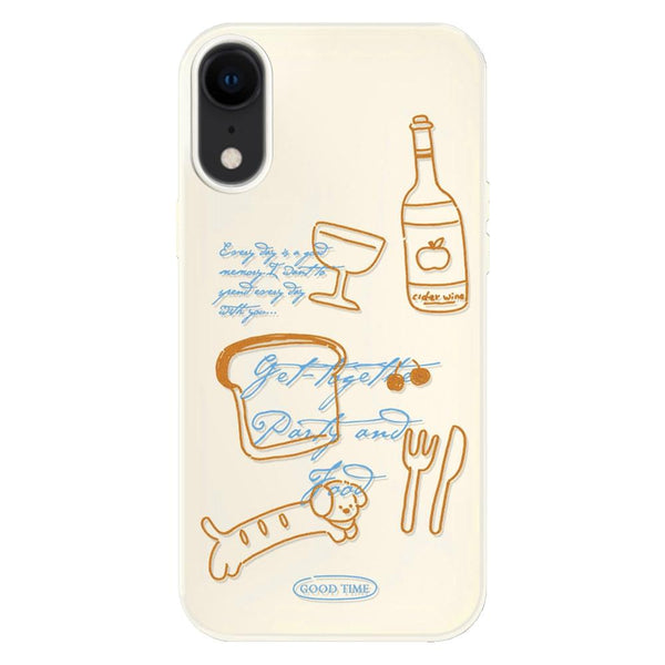 For iPhone XR Skin Feeling Jelly TPU Hybrid PC Phone Case(Party Line Dog White)