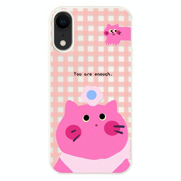 For iPhone XR Skin Feeling Jelly TPU Hybrid PC Phone Case(Pink Cat White)