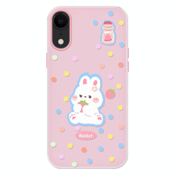 For iPhone XR Skin Feeling Jelly TPU Hybrid PC Phone Case(Polka Dot Rabbit Pink)