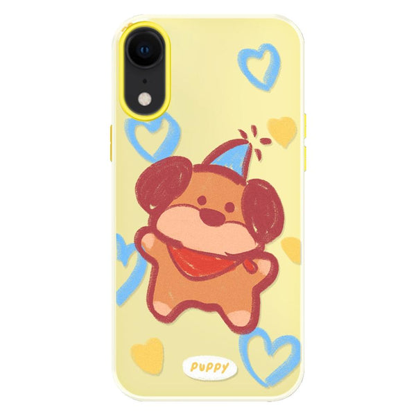For iPhone XR Skin Feeling Jelly TPU Hybrid PC Phone Case(Puppy Crayon Drawing Yellow)