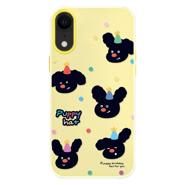 For iPhone XR Skin Feeling Jelly TPU Hybrid PC Phone Case(Puppy Hat Yellow)