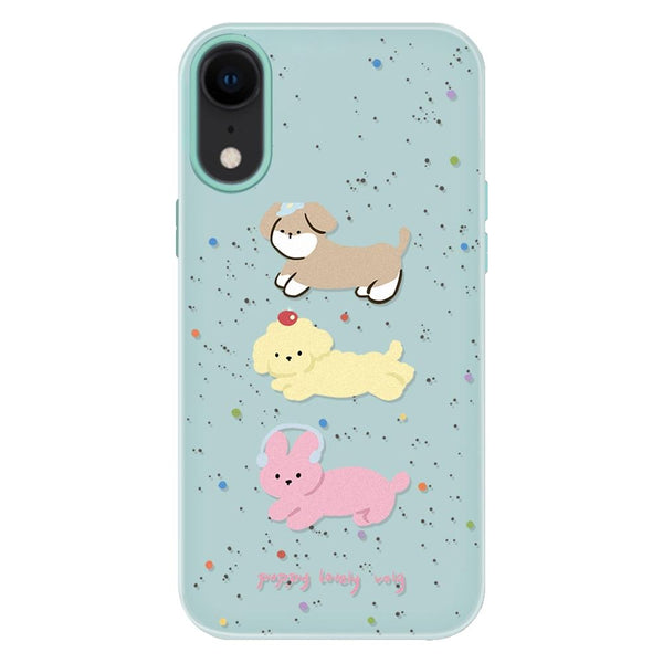 For iPhone XR Skin Feeling Jelly TPU Hybrid PC Phone Case(Three Puppies Light Green)