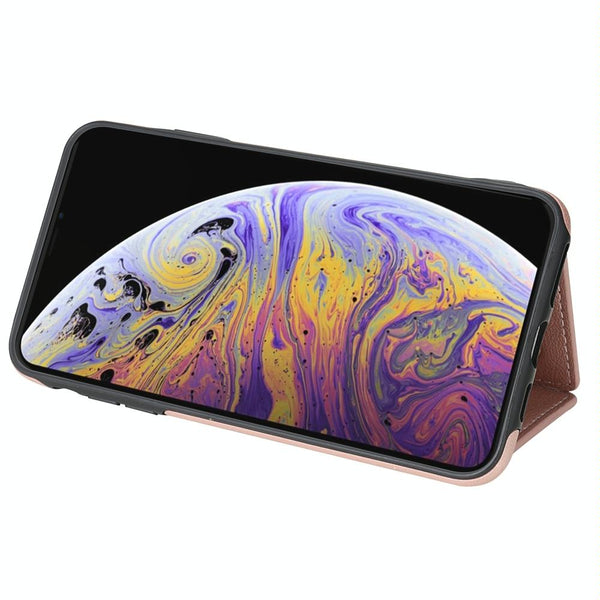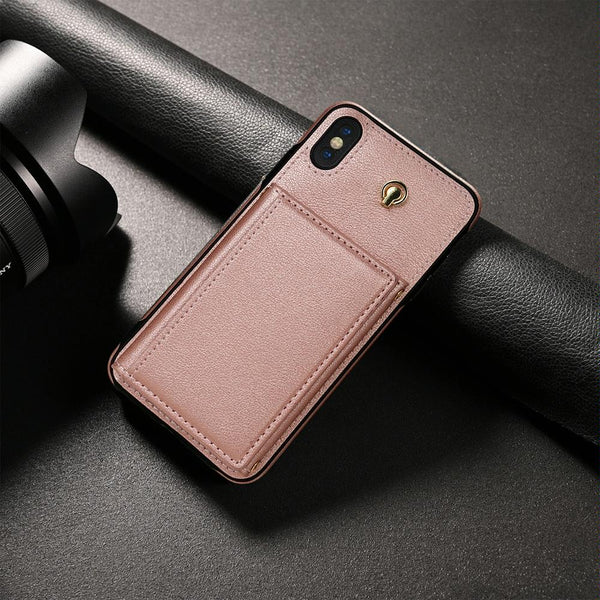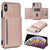 For iPhone XR Three Fold Card Bag Phone Case with Long Lanyard(Rose Gold)