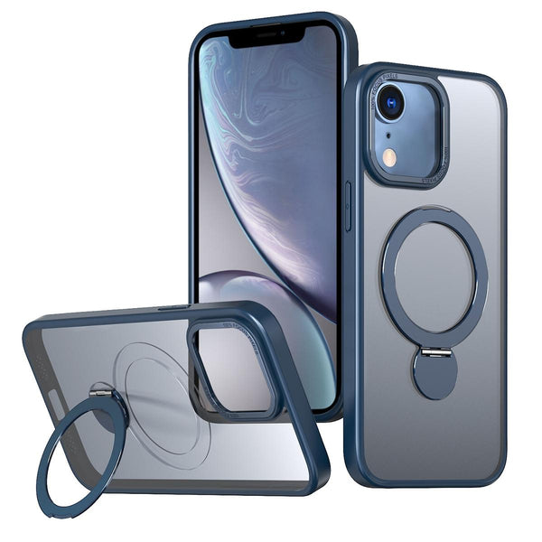 For iPhone XR Wing Series Gen2 MagSafe Metal Ring Holder Phone Case(Blue)