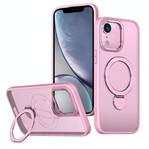 For iPhone XR Wing Series Gen2 MagSafe Metal Ring Holder Phone Case(Pink)