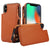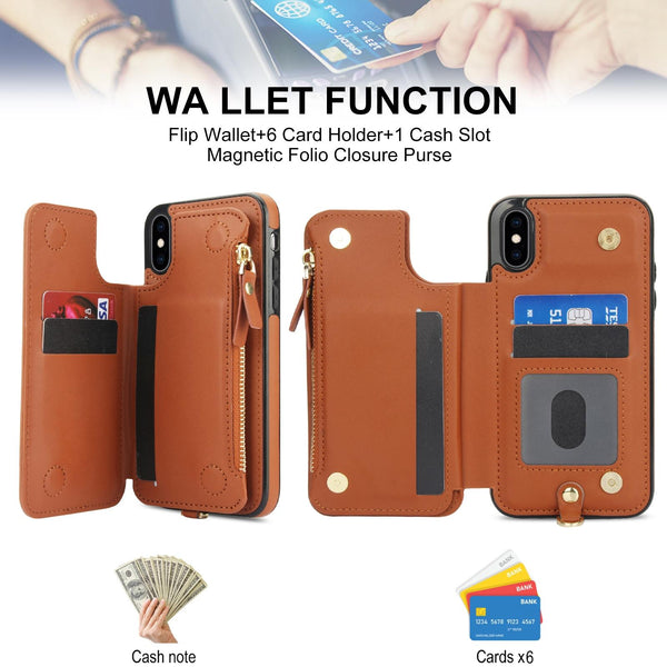 For iPhone XS Max Double Flap Zipper RFID Leather Phone Case with Short Lanyard(Brown)