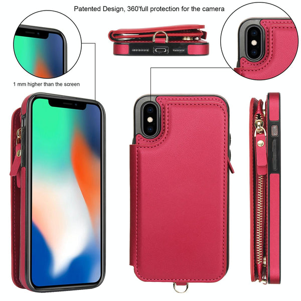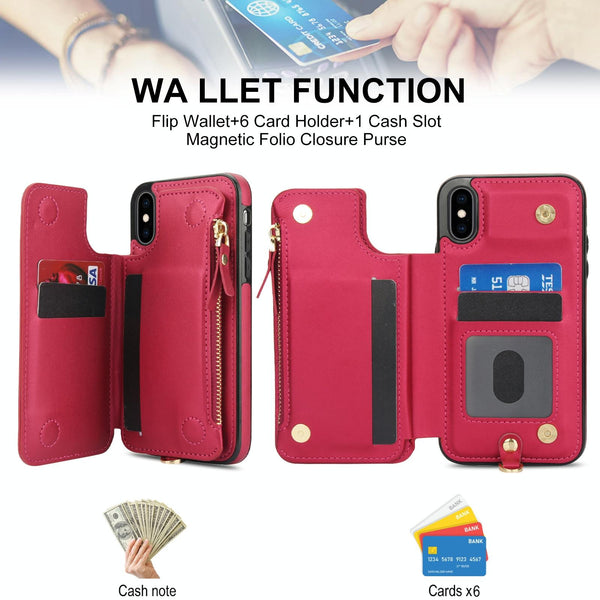 For iPhone XS Max Double Flap Zipper RFID Leather Phone Case with Short Lanyard(Red)