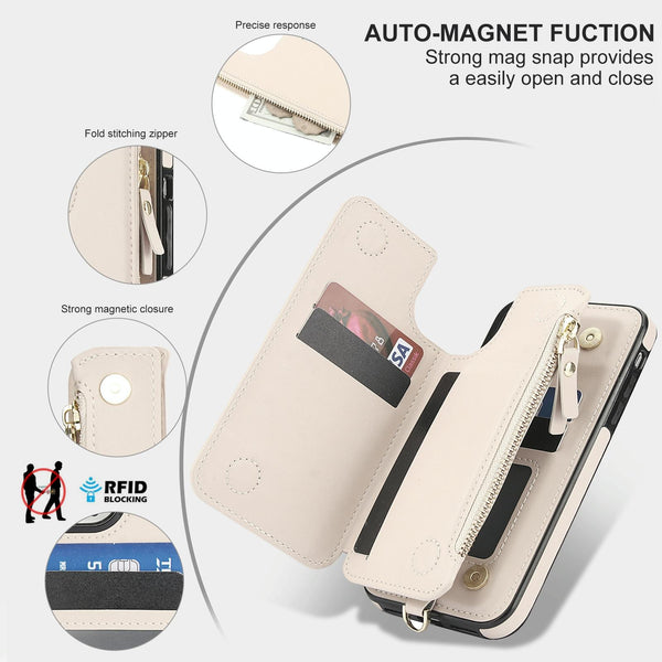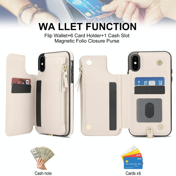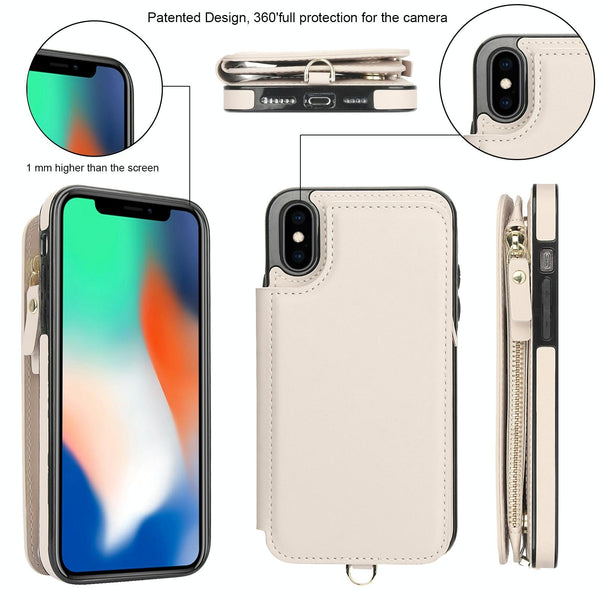 For iPhone XS Max Double Flap Zipper RFID Leather Phone Case with Short Lanyard(White)