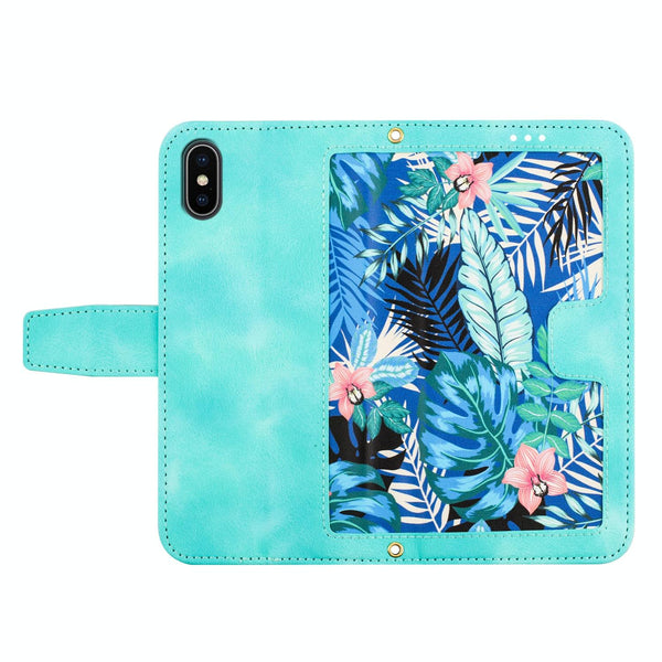 For iPhone XS Max Floral Pattern Leather Phone Case with Lanyard(Green)