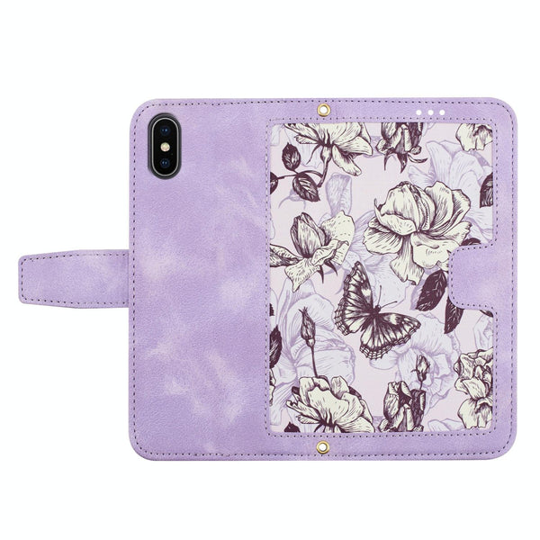 For iPhone XS Max Floral Pattern Leather Phone Case with Lanyard(Light Purple)