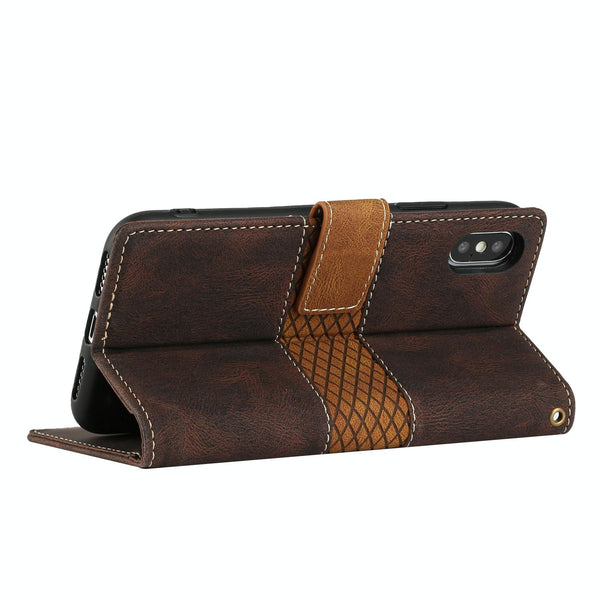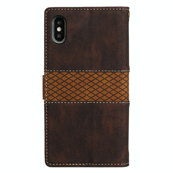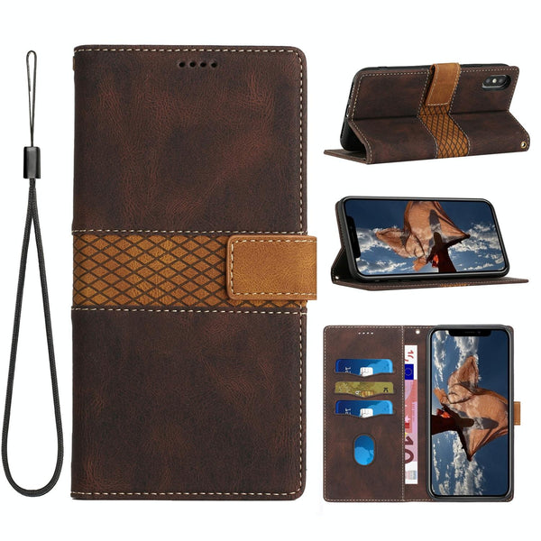 For iPhone XS Max Grid Stitching Leather Phone Case with Lanyard(Brown)