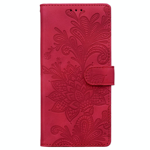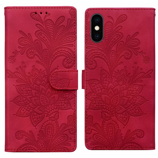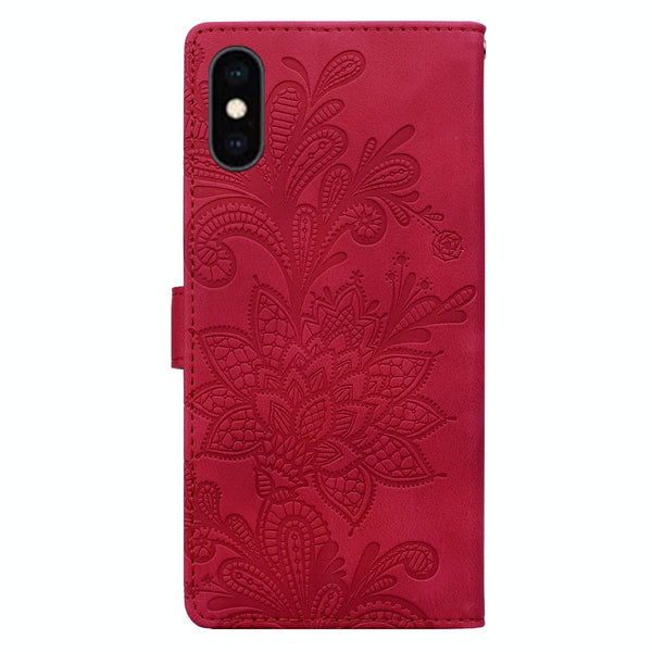 For iPhone XS Max Lace Floral Embossed Magnetic Buckle Leather Phone Case(Red)