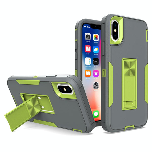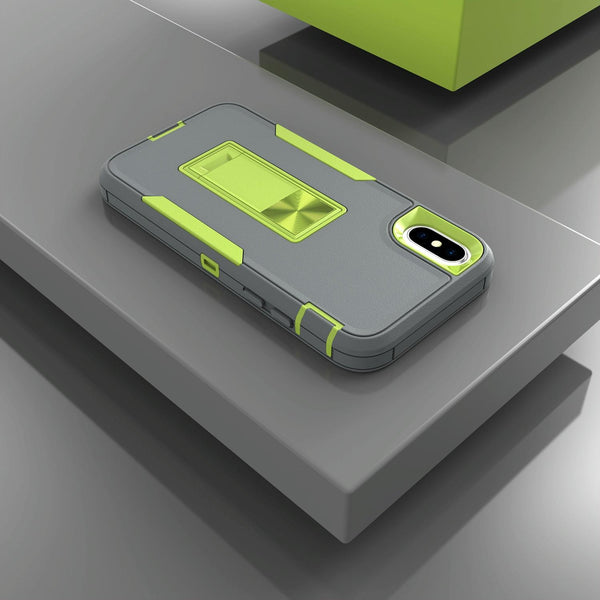 For iPhone XS Max Magnetic Holder Phone Case(Dark Grey + Green)