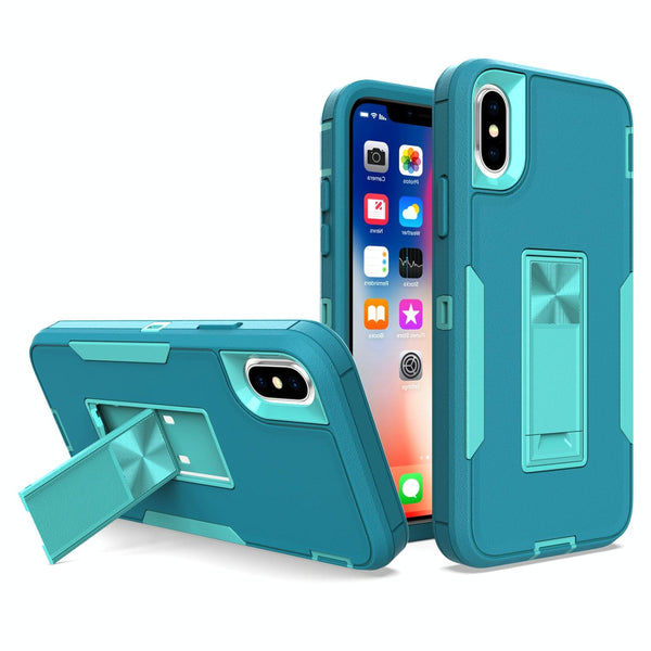 For iPhone XS Max Magnetic Holder Phone Case(Lake Blue + Blue-green)