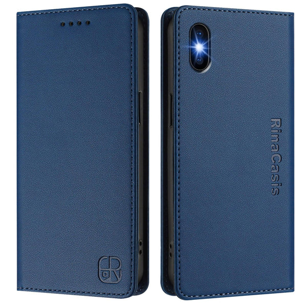 For iPhone XS Max RC01 Dual-Folded Magnetic Suction RFID Leather Phone Case(Dark Blue)