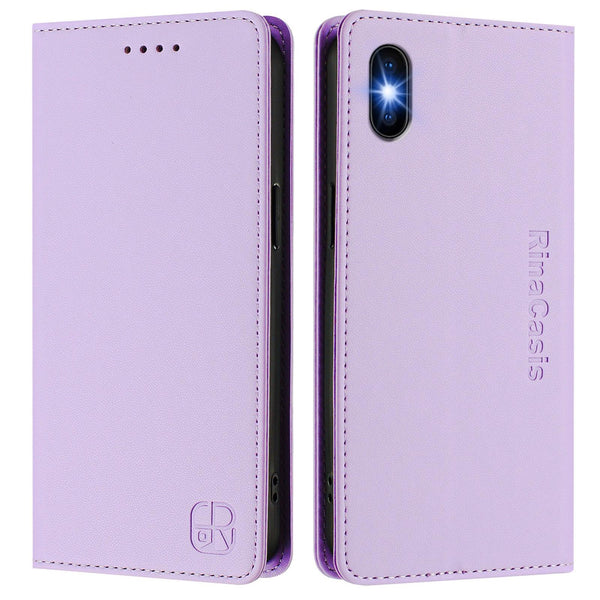 For iPhone XS Max RC01 Dual-Folded Magnetic Suction RFID Leather Phone Case(Light Purple)