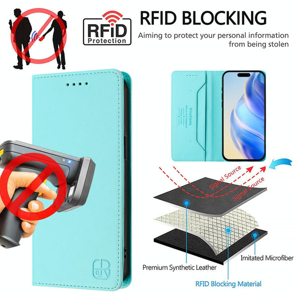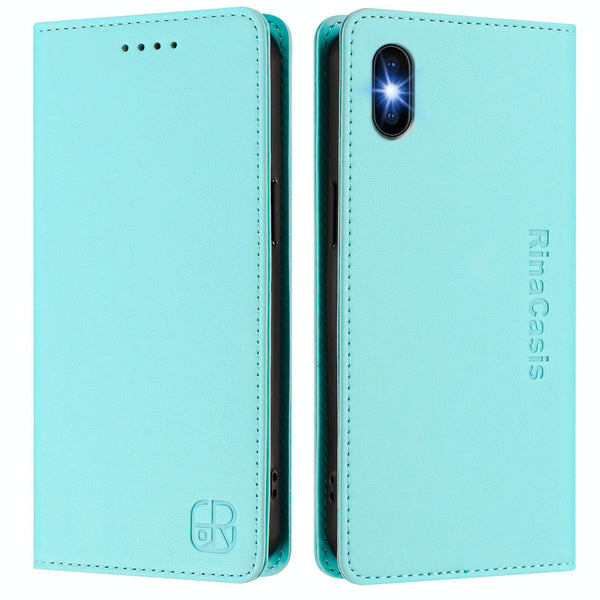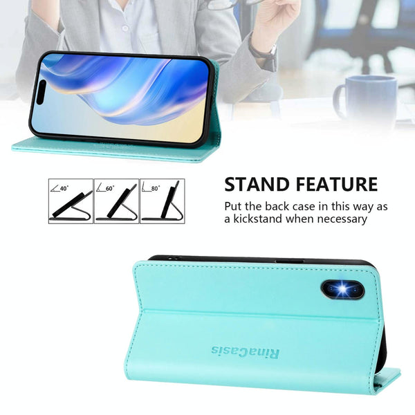 For iPhone XS Max RC01 Dual-Folded Magnetic Suction RFID Leather Phone Case(Mint Green)