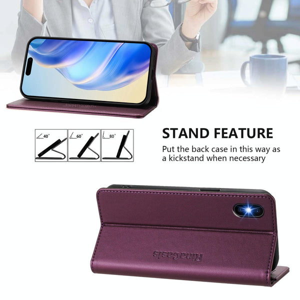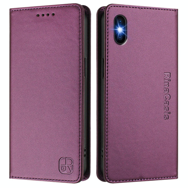 For iPhone XS Max RC01 Dual-Folded Magnetic Suction RFID Leather Phone Case(Violet)