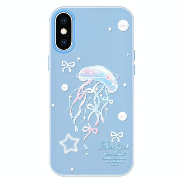 For iPhone XS Max Skin Feeling Jelly TPU Hybrid PC Phone Case(Blue Jellyfish)