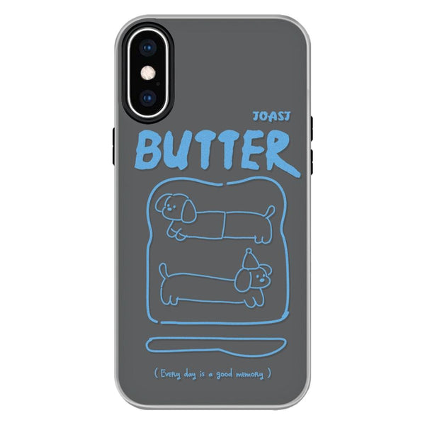 For iPhone XS Max Skin Feeling Jelly TPU Hybrid PC Phone Case(Bread Line Dog Black)