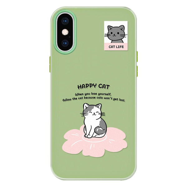 For iPhone XS Max Skin Feeling Jelly TPU Hybrid PC Phone Case(Happy Cat Green)