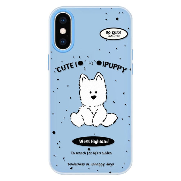 For iPhone XS Max Skin Feeling Jelly TPU Hybrid PC Phone Case(Line Dog Blue)