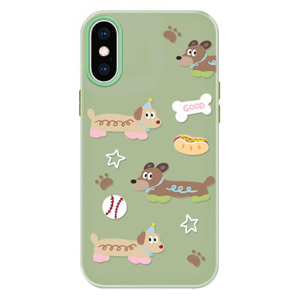 For iPhone XS Max Skin Feeling Jelly TPU Hybrid PC Phone Case(Long Dog Green)