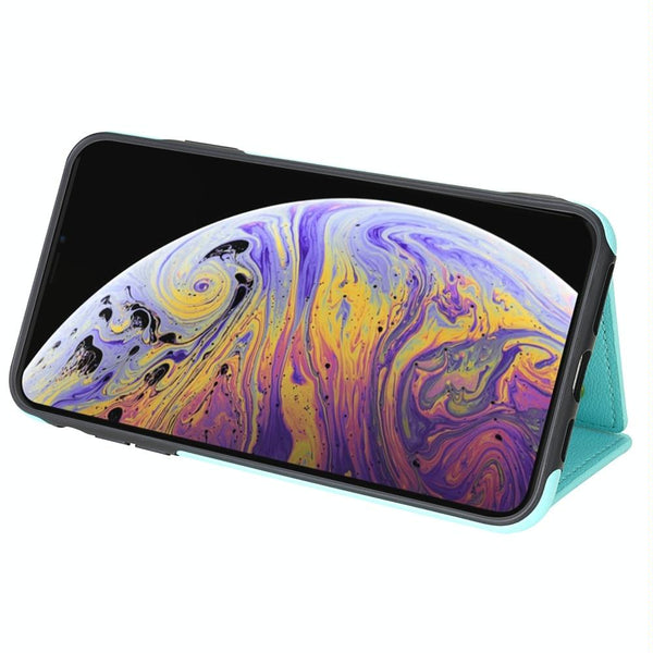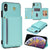 For iPhone XS Max Three Fold Card Bag Phone Case with Long Lanyard(Mint)