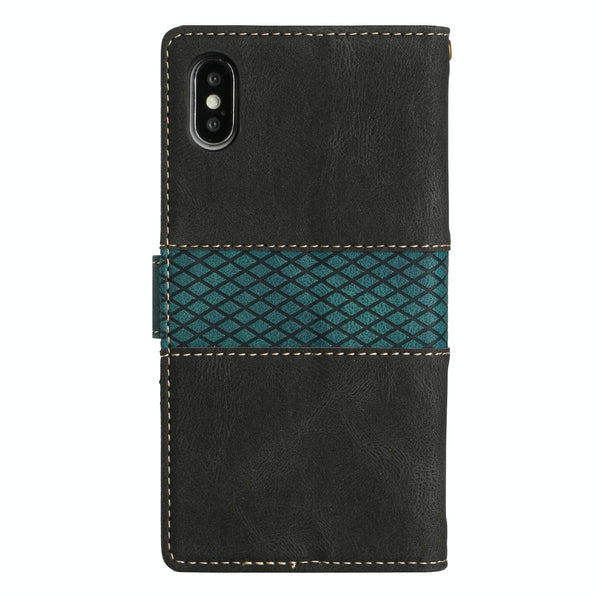 For iPhone XS / X Grid Stitching Leather Phone Case with Lanyard(Black)