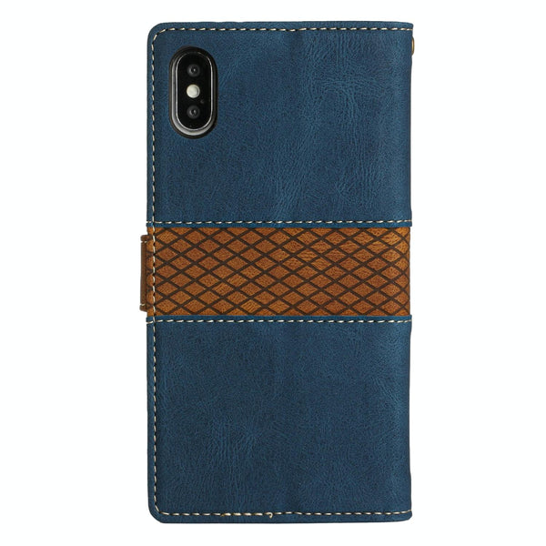 For iPhone XS / X Grid Stitching Leather Phone Case with Lanyard(Blue)