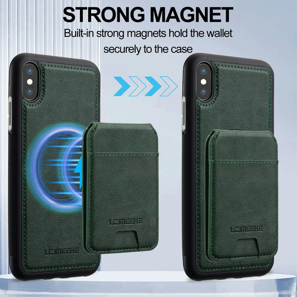For iPhone XS / X LC.IMEEKE L3 Series Detachable RFID Card Bag Magsafe Phone Case(Green)