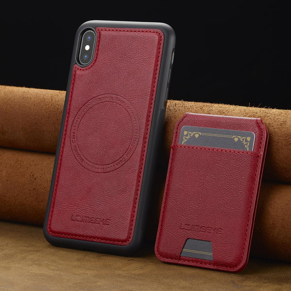 For iPhone XS / X LC.IMEEKE L3 Series Detachable RFID Card Bag Magsafe Phone Case(Red)
