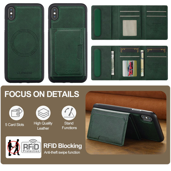 For iPhone XS / X LC.IMEEKE L5 Series Detachable RFID Card Bag Magsafe Phone Case(Green)
