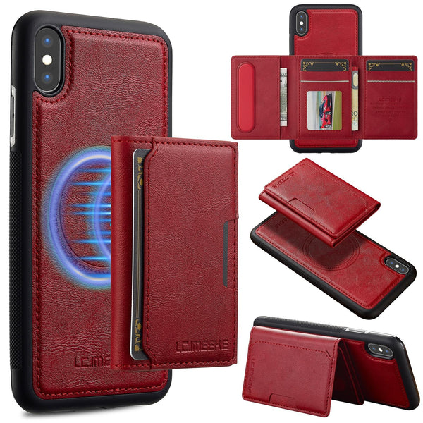 For iPhone XS / X LC.IMEEKE L5 Series Detachable RFID Card Bag Magsafe Phone Case(Red)