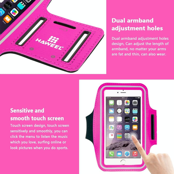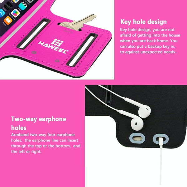 HAWEEL Sport Armband Case with Earphone Hole & Key Pocket, For iPhone XS, iPhone XS Max, iPhone X, iPhone 8 Plus & 7 Plus, iPhone 6 Plus, Galaxy S9+ / S8+ / S6 / S5(Magenta)