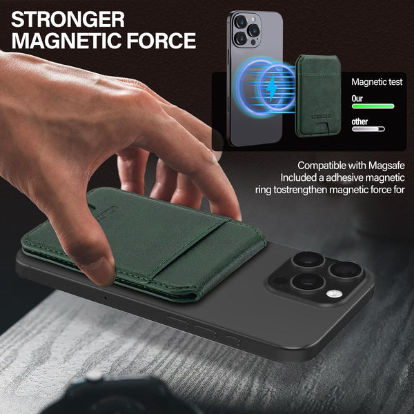 LC.IMEEKE 3-Cards MagSafe RFID Leather Card Bag(Green)