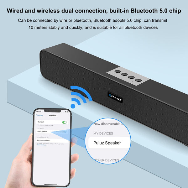 PULUZ 10W Soundbar Wired Wireless Bluetooth Surround Speaker(Black)