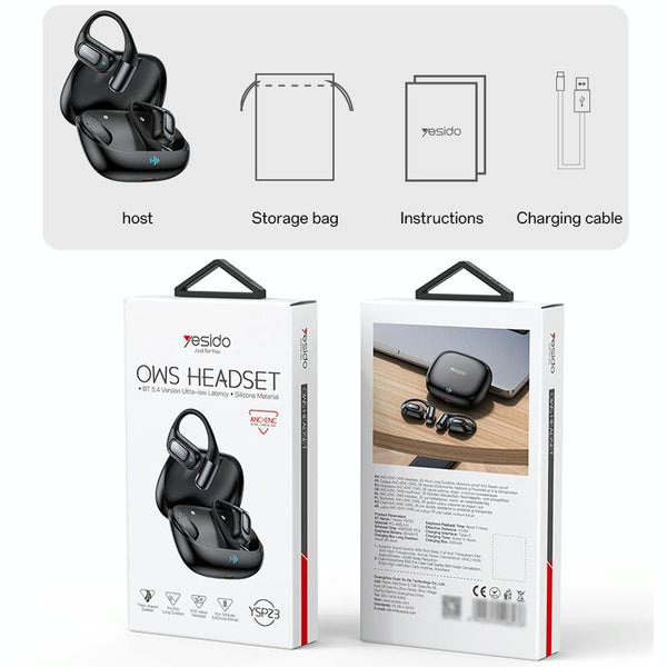 Yesido YSP23 Open Ear ANC and ENC Dual Noise Reduction OWS Bluetooth Earphone(Black)