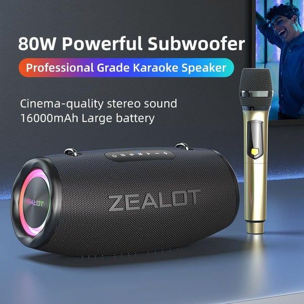 Zealot S87M 80W Portable Outdoor RGB Bluetooth Speaker with Microphone(Black)