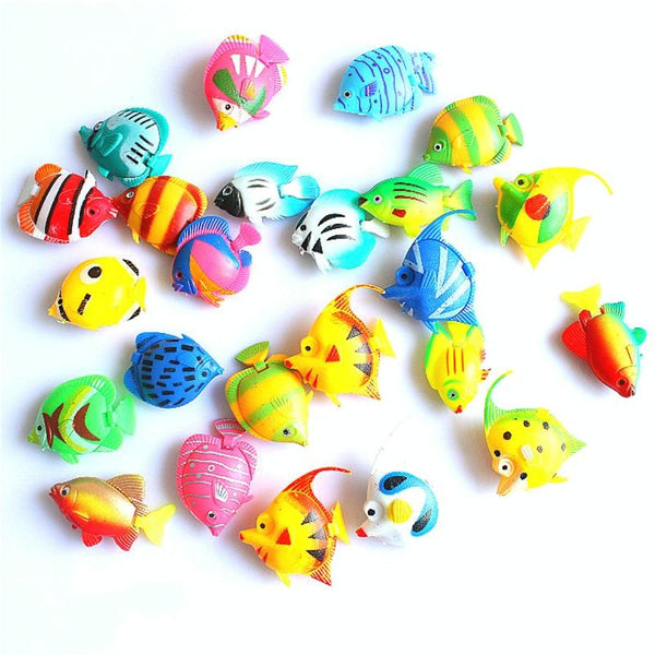 Bring your fish tank to life with this set of 10 vibrant, simulated plastic fish. These colourful artificial fish add a touch of tropical beauty without the need for feeding or maintenance. Perfect for aquariums, children's swimming pools, or sensory play, these realistic-looking fish gently sway with the water's current, creating a mesmerising underwater scene. Each fish measures approximately 4cm in length and comes in a variety of random colours, adding a splash of surprise and delight. Please note that the fish may float, sink, or remain semi-suspended depending on the water flow. Made from durable plastic, these toy fish are a fun and low-maintenance way to enhance any aquatic environment.