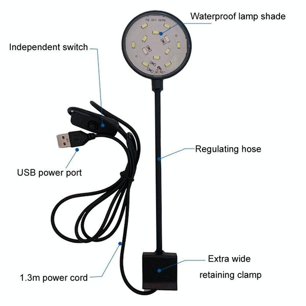 5W LED Aquarium Clip Light USB - Fish Tank Lamp 10-30cm (Black)